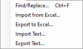 This menu contains items related to finding and replacing text, along with various import/export operations.