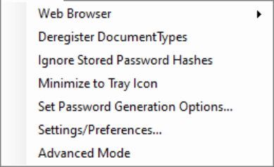 The "Generate Password" item will generate a password and store it into the current cell. See "Password Generation Options" in the "Options" menu to control the length and contents of generated passwords.